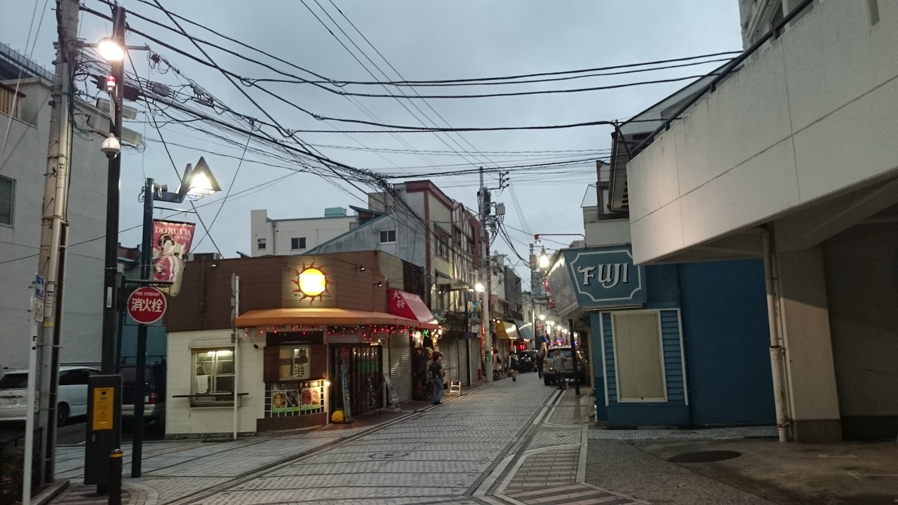 汐入から横須賀中央に向かう方向に並ぶ程良くアメリカンな商店街です。