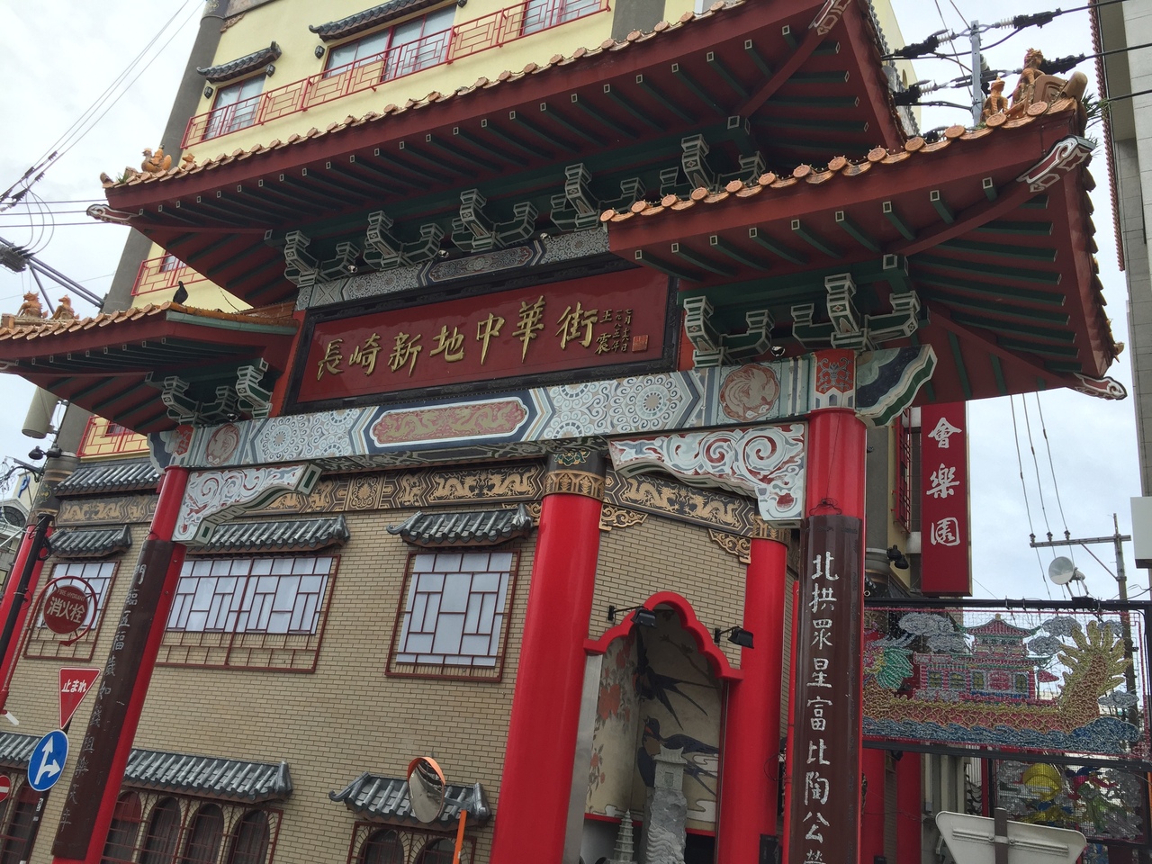 ベルナード観光通りや浜んまちアーケード街でブラブラ時間をつぶしてから、今日の目的のちゃんぽんと皿うどんを食べに長崎新地中華街へ向かいました。少し歩くと川沿いに目印の大きな中華門が出迎えてくれました、旅の思い出にと絵になる中華門は撮影スポットとして賑やかでした。
