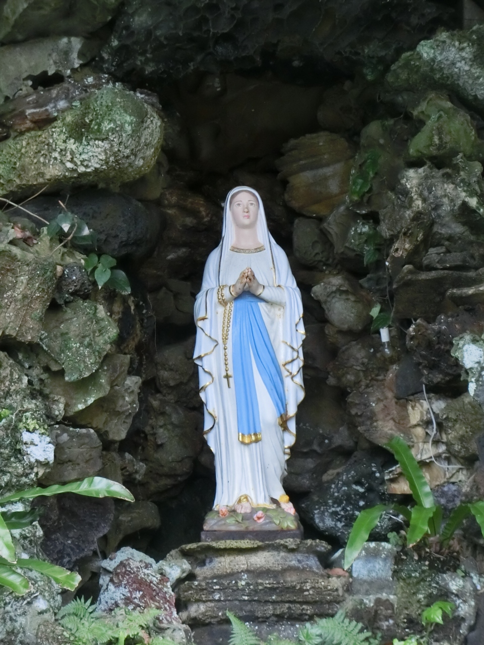 初めての五島旅行でドライブの途中、道路沿いに教会があったので観光と休憩を兼ねて立ち寄りました。坂道を上がった所に教会が経っていて、さらに奥まで行って見たら”ルルド”がありました。信者が各地から石を集めて作られたとのこと、信仰ってすごいですね。ルルドの辺りは静寂に包まれていて荘厳な雰囲気でした。