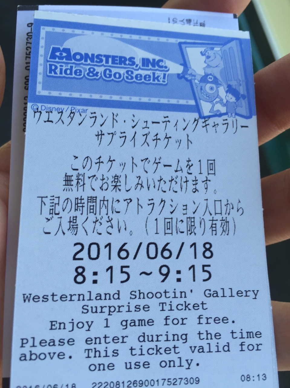 朝一でモンスターズインクのファストパスを取りに行った際に一緒に発券されました。指定の時間帯が短いのがちょっと大変でしたが、せっかくなので行ってみました。ここはパスポートとは別で有料のシューティングゲームです。幼稚園の子供にはまだ全然理解できなかった様でした。
