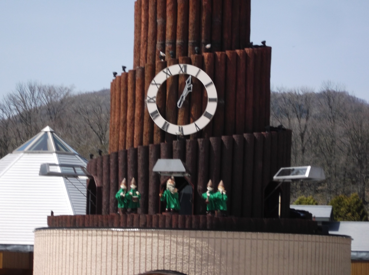 道路から入ると正面に高い塔が!!世界一のハト時計だそうで、13時ちょうどにタイミングよく演奏を聴くことができました。内部には、木こりの丸太切りのレースや木琴で遊んだりできるようになっていました。木製の遊具で遊べる所もありました。お土産もしっかり買いました。いろいろな売店も並んでいて、美味しい牛乳も飲みました。白い恋人のソフトクリームもありました。