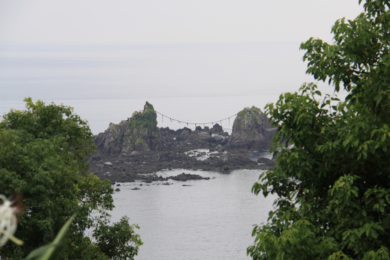 真鶴岬の先端に三つの巨岩が並ぶのが三ツ石です。