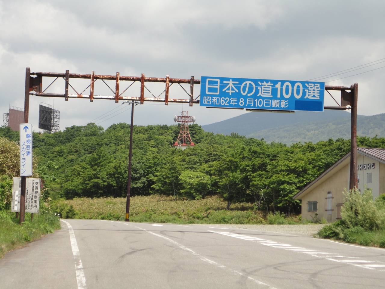 会津若松市から浄土平へ行くために、車で磐梯吾妻スカイラインを通りました。かなり急カーブがある山岳道路ですから、十分にスピードを落として登っていく必要があります。道路面の所々に二輪車のタイヤ痕がついていました。おそらくタイヤをきしませながら走ったのでしょう。5カ所ほど磐梯山や猪苗代湖を望む展望台が道路脇にあります。特に、「双竜の辻」は急カーブの間にある展望台でここから見る磐梯山と並んで安達太良山が見える景色は最高です。