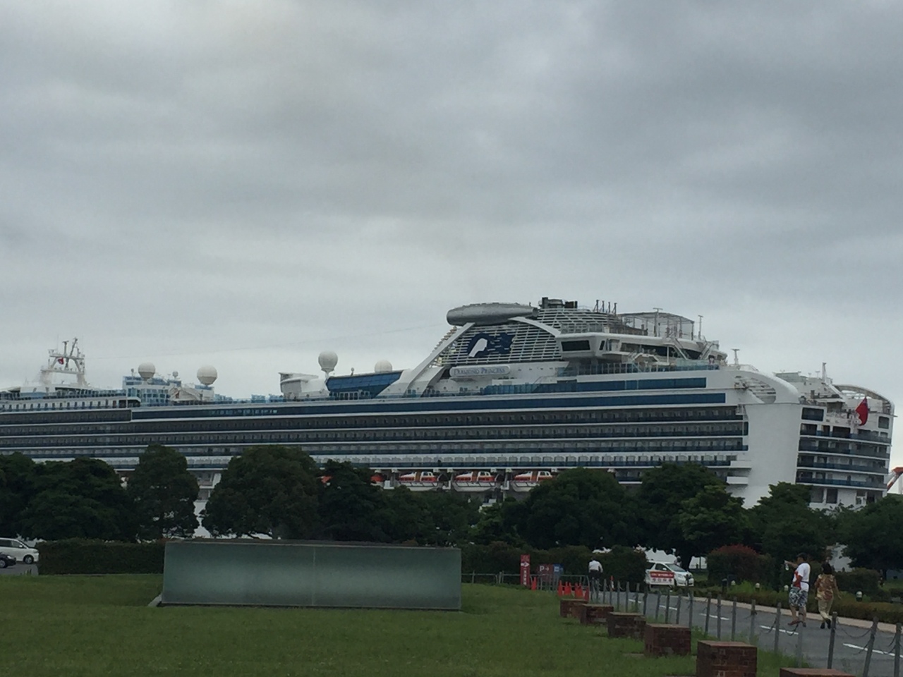 大さん橋から赤レンガ倉庫へ行く途中にある象の鼻パーク。大さん橋ターミナルのつけねから延びている防波堤を上から見ると象の鼻に似ていることからその名前がつけられたと言うことでした。ダイヤモンド・プリンセスの後姿を撮って来ました。