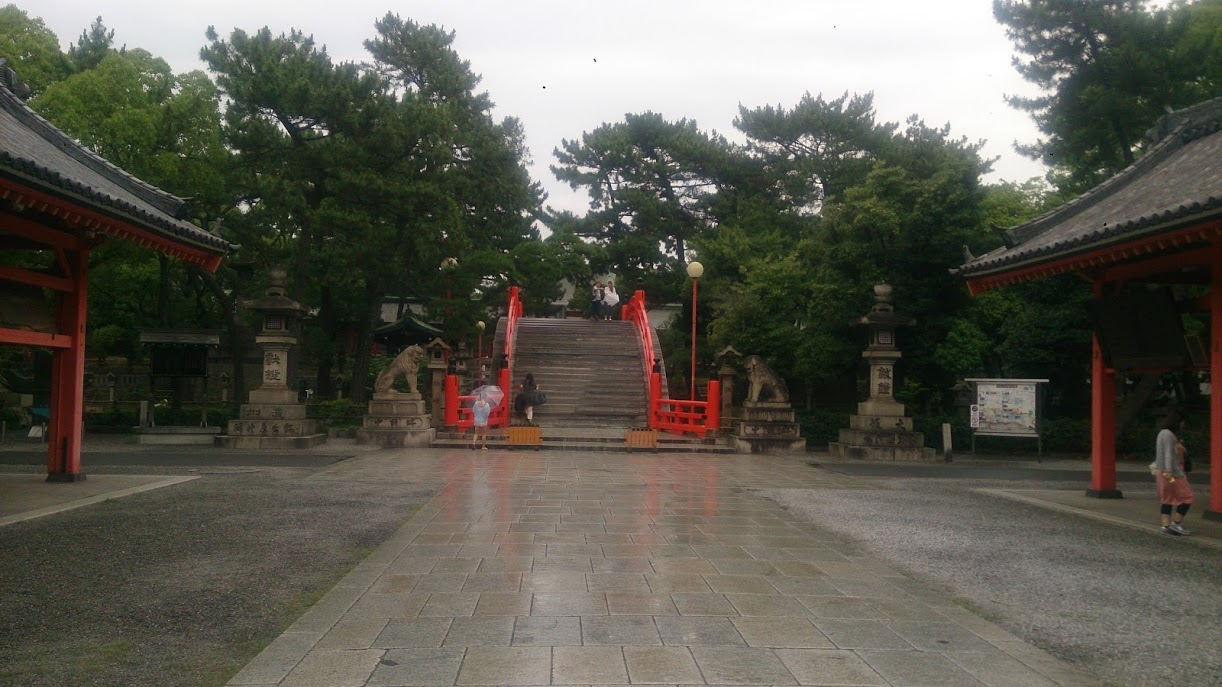 アクセスは南海本線の住吉大社駅、南海高野線の住吉東駅、阪堺電車の住吉鳥居前駅といずれの駅からも5分以内の交通の便が非常に良い場所に建っています。自分は阪堺電車で行きましたが、電停を降りると目の前が鳥居でした。大きな鳥居をくぐると朱色の有名な反橋があって、住吉大社に来た~という感じになります。その奥には国宝の本殿が4棟あって、いずれも、巨大な本殿ではないですが、木の素材が黒光りしており歴史と風格を感じさせる建物で厳かな雰囲気になっています。