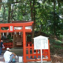 「稲荷神社、鶏石神社と2つの末社が並んで建っています。色も形も同じなので、説明書きがないと区別がつきません。右が鶏石神社です。ここは鶏を祀った日本唯一の神社だと言われています。御神体は鶏の形をした石とのこで、面白いものをご神体にしている神社だと感じました。世の中には珍しくて知らないものがたくさんあるのですね。