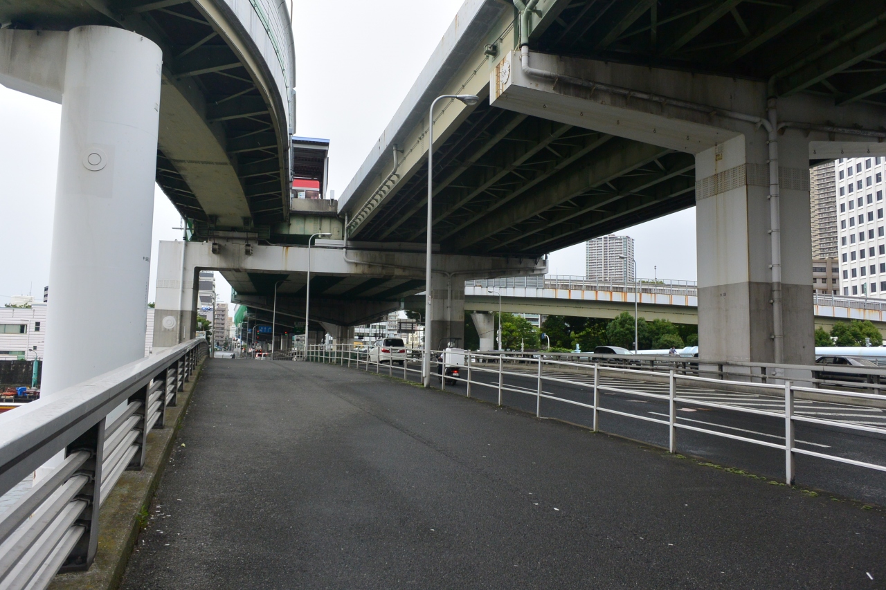 新なにわ筋が土佐堀川を渡る橋です。上を阪神高速道路が走っており、横から見ると橋が二重になっているように見えて、豪快な光景です。湊橋自体は江戸時代からあったようですが、現在の橋は昭和57年に架けかえられたものです。