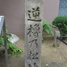 福島区福島にあったとされる老松のことで、その松の下で、源平合戦の時、源義経と梶原景時が軍議を行ったと平家物語に書かれています。今はその老松はありませんが、碑と説明プレートの横には一本松が植えられていました。