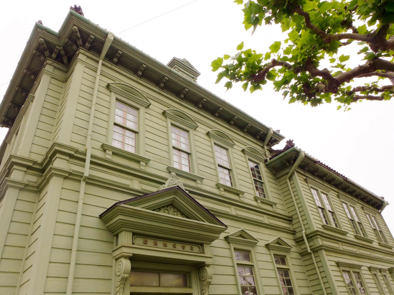 木造2階建ての建物は、屋根に突き出た窓はルネッサンス様式、軒先や窓枠に洒落た装飾や意匠が施されていて、贅を尽くしたハイカラな建物です。