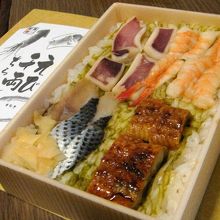 こはだ・うなぎの蒲焼・蒸し海老・いかの一夜干しの4種類、どれも美味ですね。
