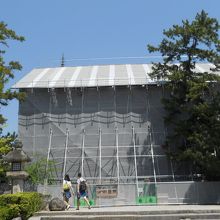 有名な金剛力士像が立つ「中門」は、残念ながら工事中。。