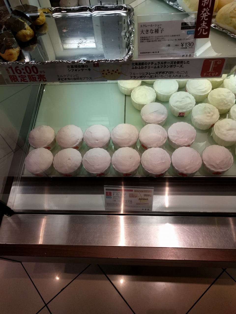 「北菓楼 大丸札幌店」に土産探しで行った。大丸札幌店限定のCカップゆきプリン(297円)とFカップゆきプリン(378円)があった。これが食いたかったが晩めし前のため諦め、定番の北海道開拓おかき(枝幸帆立味)にした。