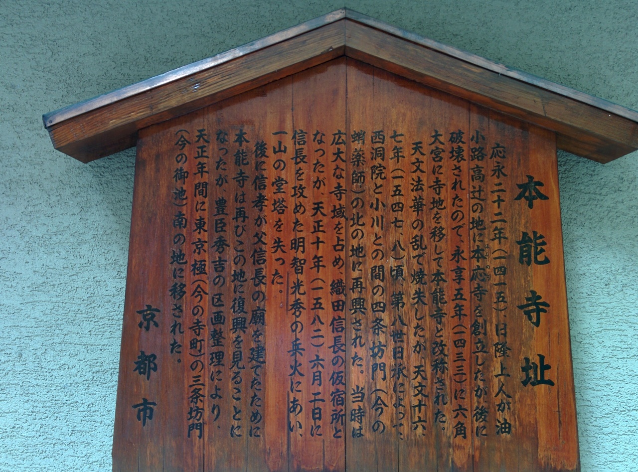 この「本能寺跡」の場所は、四条通油小路通を北方向に上る右手にあります。