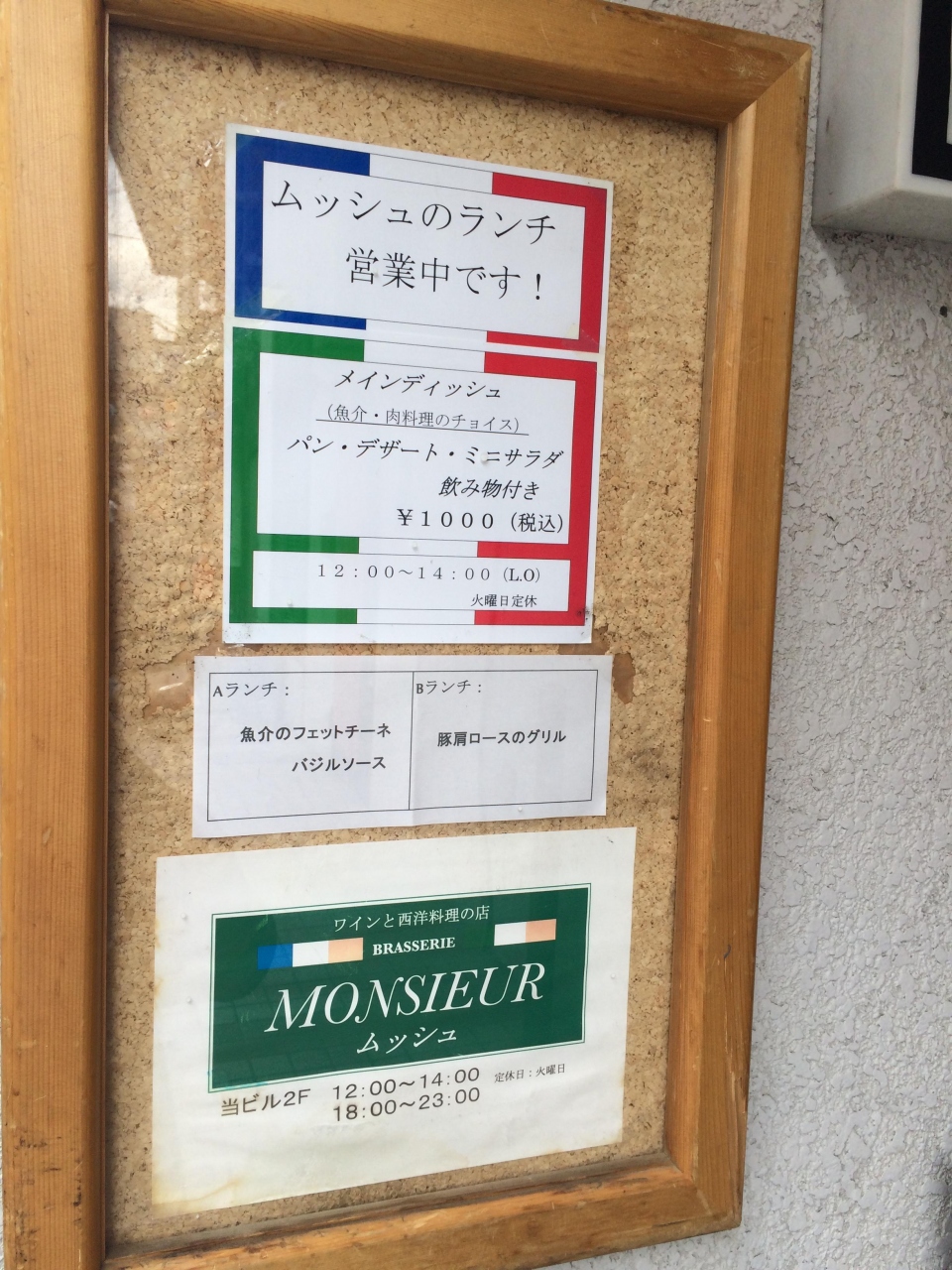 土手町から細いかくみ通りを抜ける右角二階にらあるムッシュ