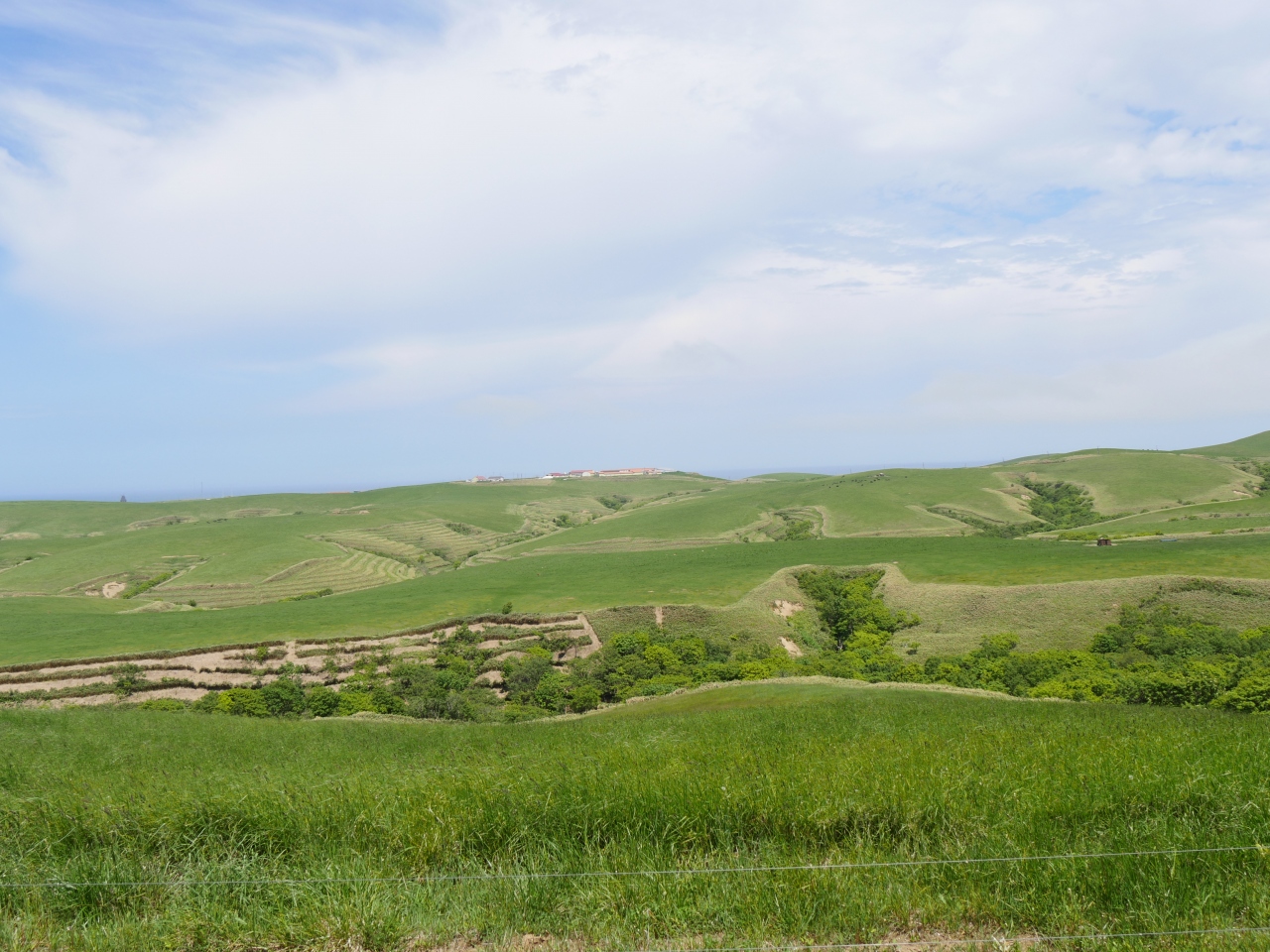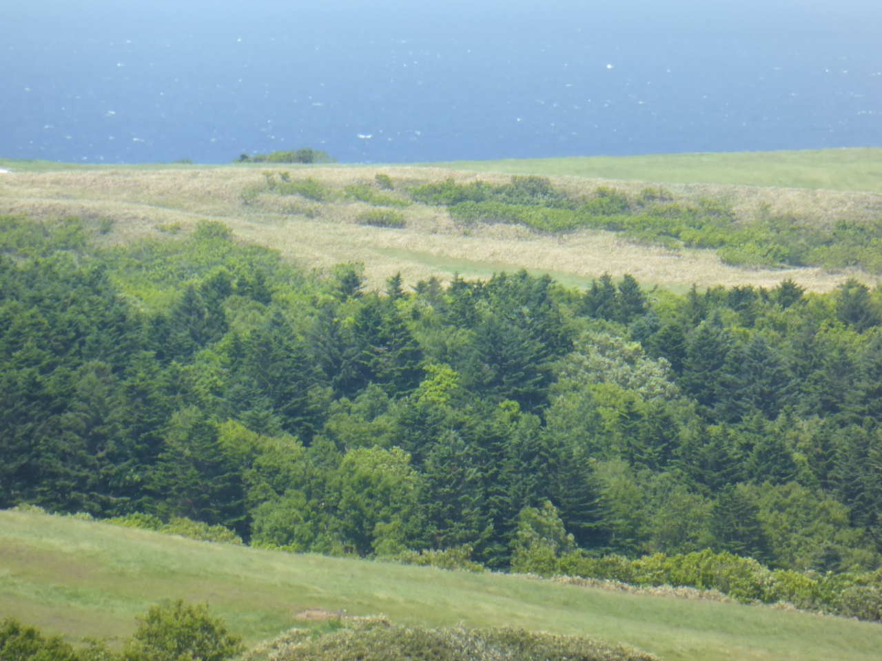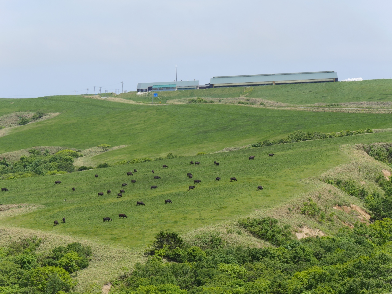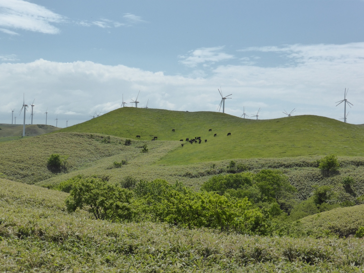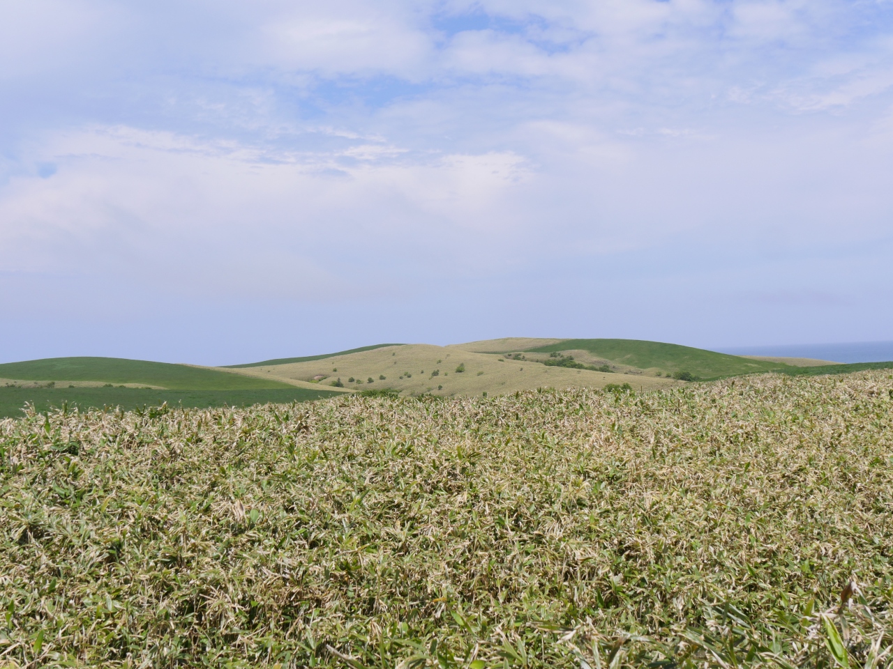 丘陵はなだらかで、6月の太陽に牛たちは元気よく草を食んでいました。新緑の草原と千島笹、ダケカンバの新緑、エゾマツの深緑がコントラストになってとてもきれいでした。時間の関係でサロベツ原野とどちらにしようか迷ったんですが、宗谷岬に近いのでこちらに行きました。レンタカー必須の観光地です。