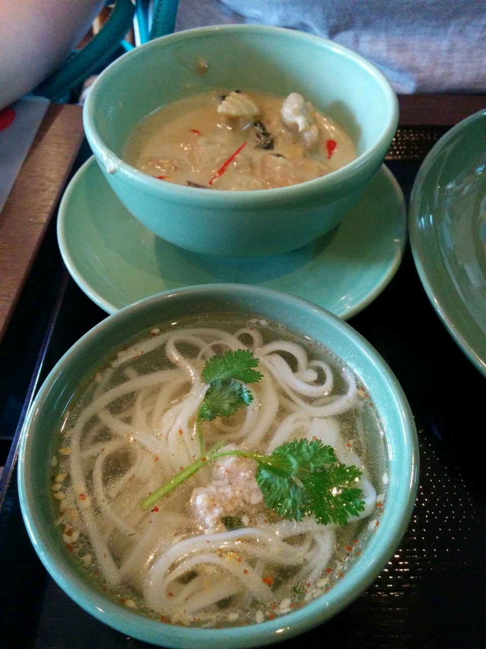 豚ひき肉バジル炒飯、なすのバジル炒、グリーンカレー(鶏肉)どれも600円です。しかもスープ付き+200円でミニタイラーメンを足せます。ただし今日は、スープがミニミニラーメンになってました。また、タイラーメンは、500円です。