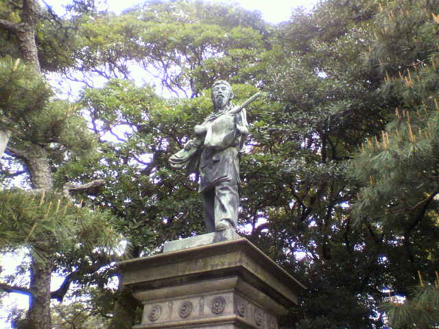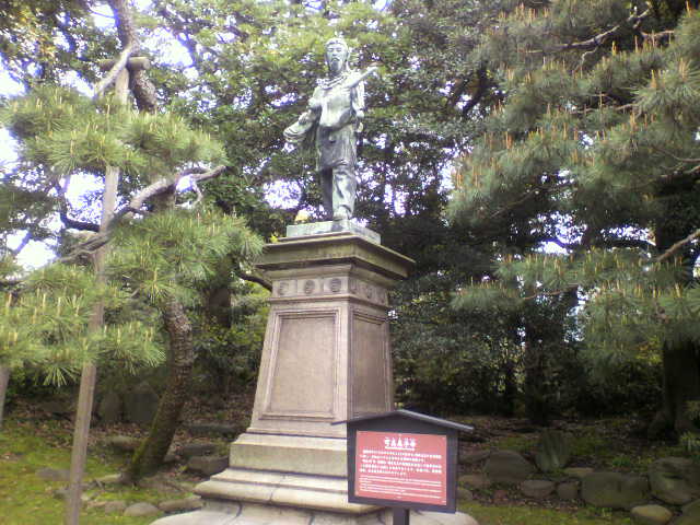 中央区にある都立の庭園、浜離宮恩賜庭園内、中の御門から入園してちょうど正面辺りに見上げるほどの大きな像がありました。可美真手命の銅像です。「うましまでのみこと」と読むそう。