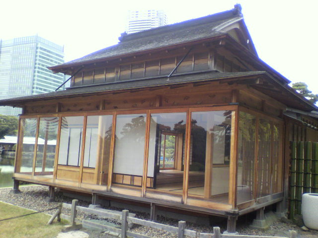 中央区にある都立の庭園、浜離宮恩賜庭園内、潮入りの池のすぐそばに建っている建物がこちらの松の御茶屋です。