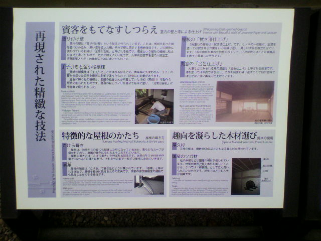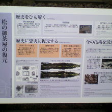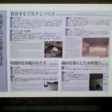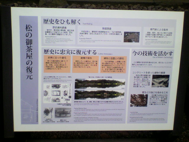 そばに掲げてある案内板を読んでいると、復元のための苦労や努力が伝わってきて、技術力に感動します。今はキレイだけど、これからどんどん味が出てくるお茶屋になると思います。