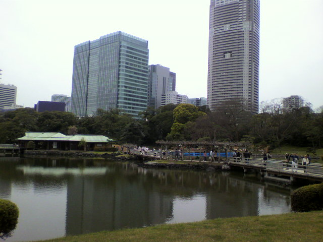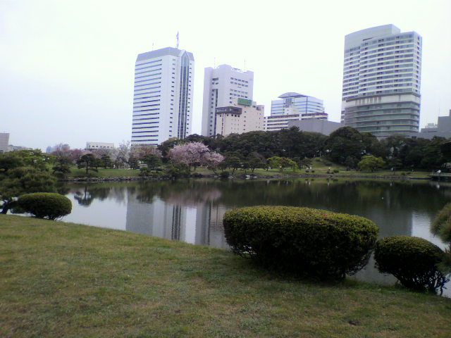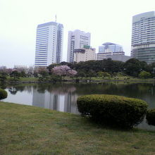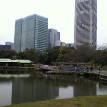 池には橋がかかっていて、その橋の上から池越しに高層ビルを眺めることができ、ここは都会なんだなぁ…と実感します。