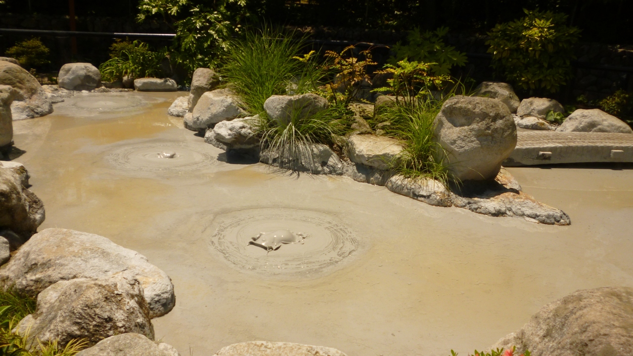 別府の八大地獄のひとつです。別府には坊主地獄がもう一つあるようで、ここは鬼石坊主地獄として区別されているようです。やはりこの灰色の熱泥がボコボコしてると、(まだ知らないけど)地獄のイメージがわいてきます。近くには足湯もありました。