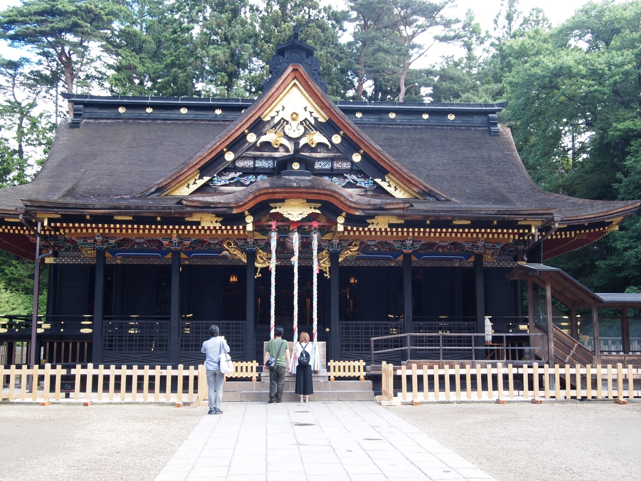 仙臺総鎮守国宝大崎八幡宮です。国道48号線で鳥居の前を通り過ぎてから社殿の裏手に回ると駐車場があり、北鳥居をぬけて参道を歩いていくとすぐ社殿前に出ます。安土桃山時代を代表する権現造だそうです。この時代らしく絢爛豪華です。高野槇の巨木も一見の価値があります。