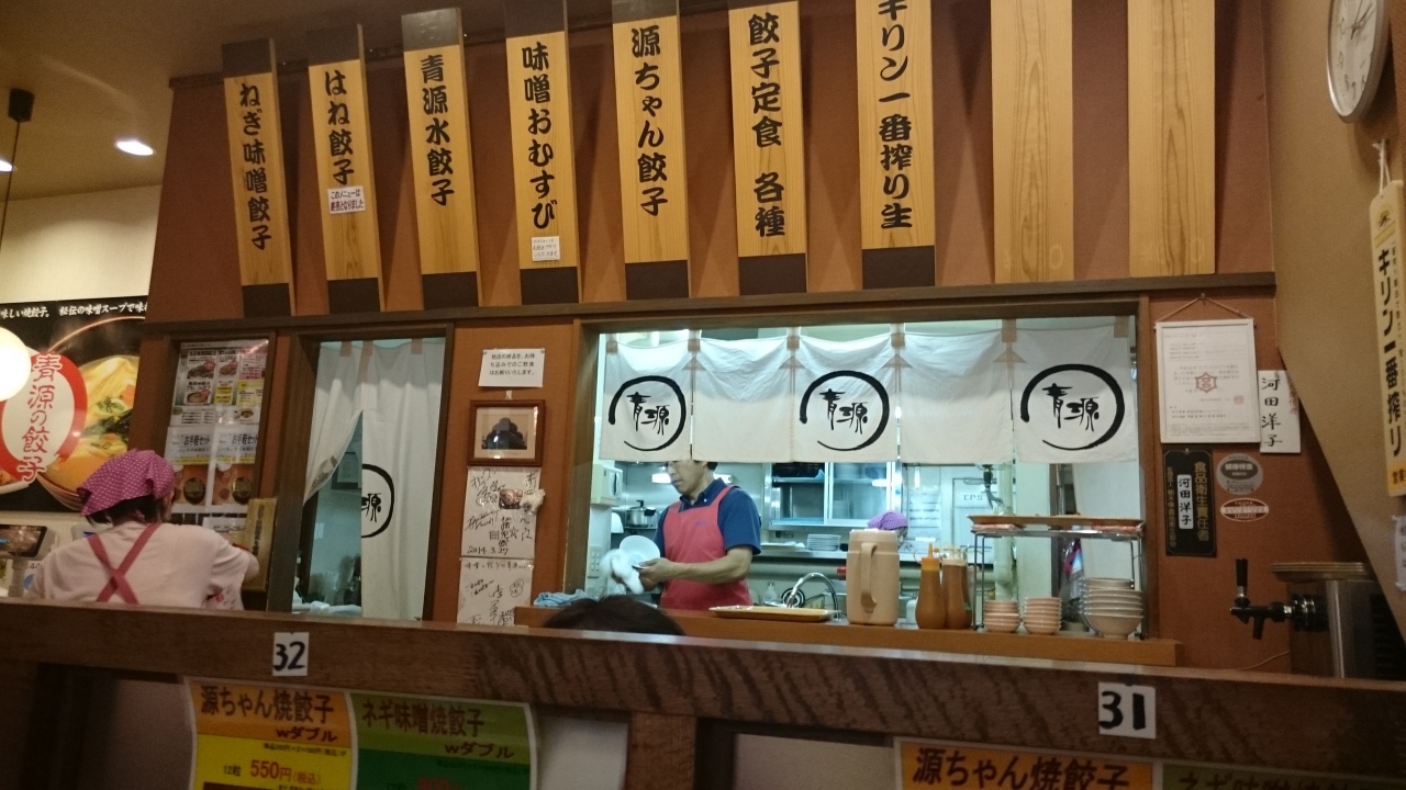 JR宇都宮駅の駅ビル、パセオの1階の宇都宮餃子の有名店。隣がとんかつのさぼてんなのですが、一瞬、さぼてんと間違えそうになります。元々がお味噌屋さんなので、味噌を使ったメニューがメイン。イチオシは「ネギ味噌焼餃子」で、シャキシャキの小ネギに特製味噌だれと唐辛子がトッピングされていて、味噌だれで食べる独特の餃子。「青源水餃子」は、赤味噌ベースで、お酢と生姜のきいたスープのなかに餃子が入っています。見た感じは味噌スープですが、いい意味で期待を裏切る味です。