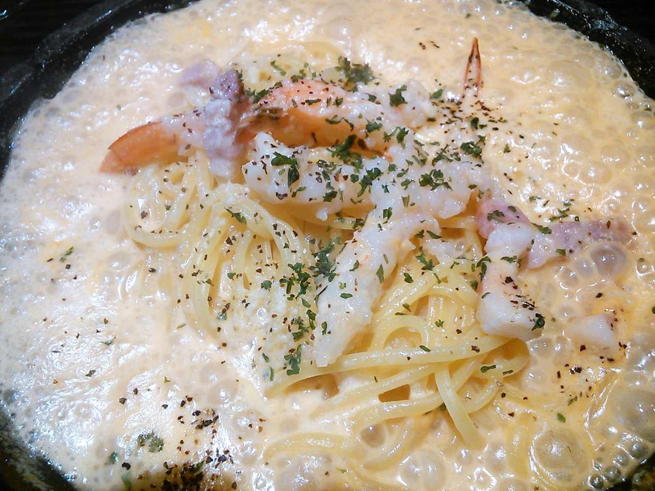 石焼にすることで、食べ進めるごとに濃厚になっていく味の変化を楽しめるという事で、濃厚になって美味しそうなクリーム系をチョイス。正解です!とにかくトマト好きの同行者は、トマトソースを頼んでイマイチだった模様…。
