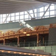 鉄道を降りて国際線出発ロビーに入る、左に進むと上の方に見えます。