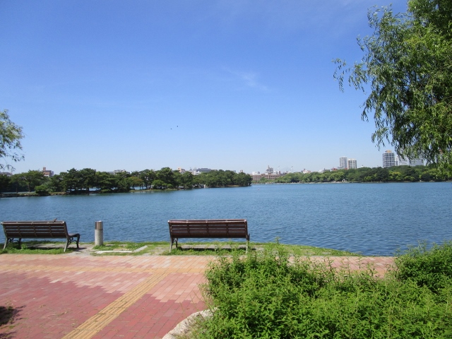 大濠公園の中にある大濠池は橋で2つに分けられています。