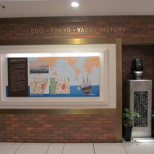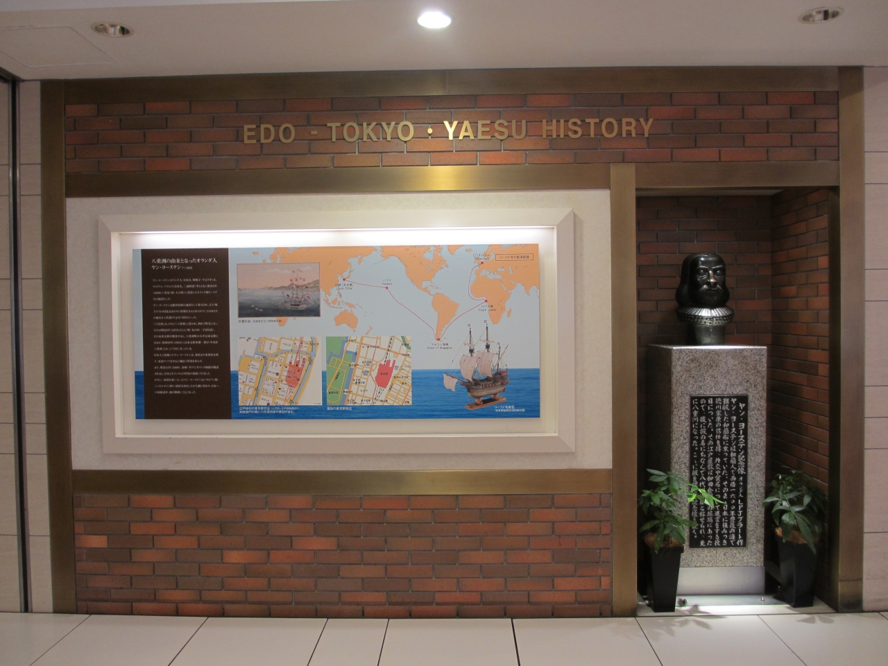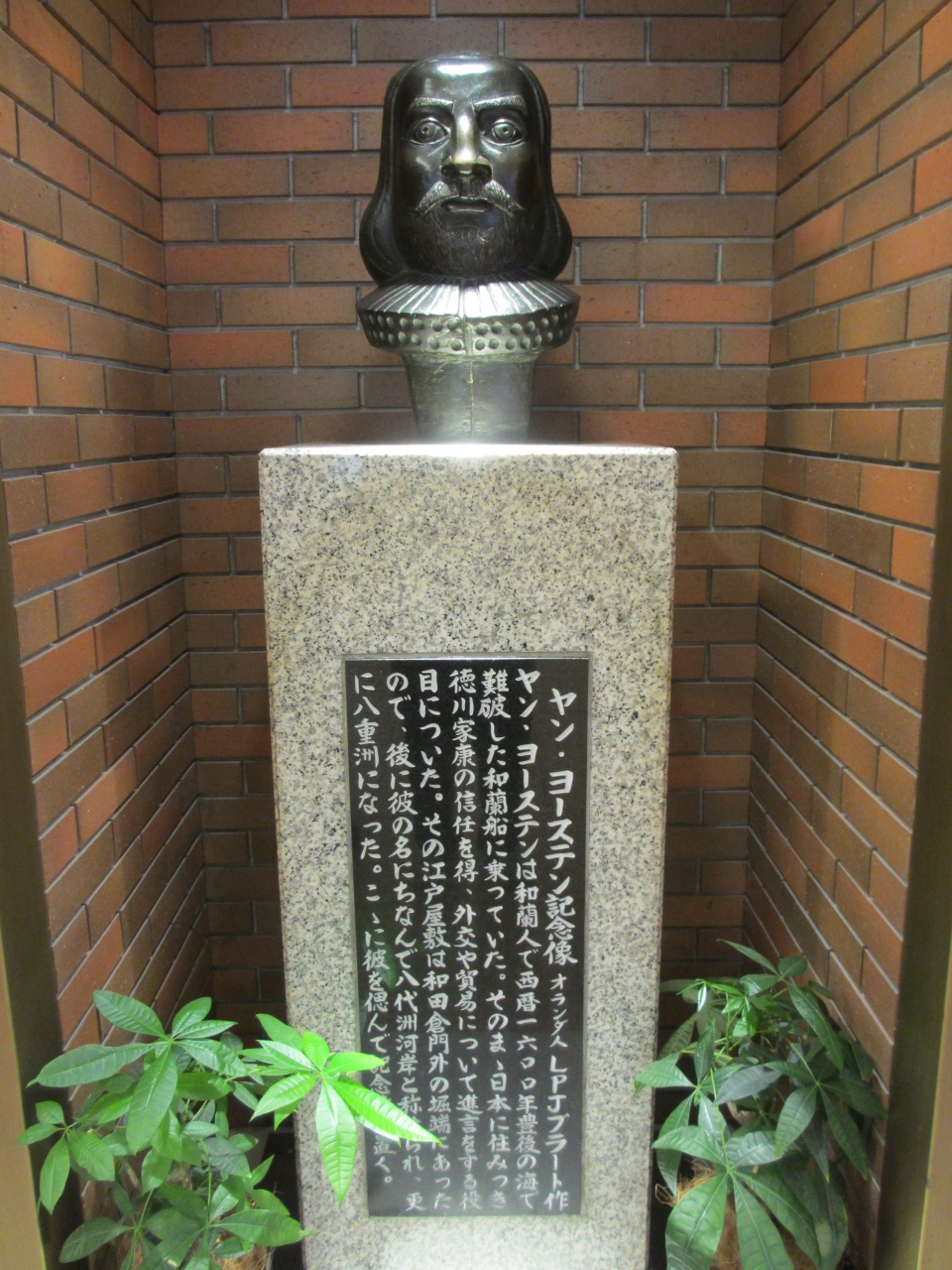 東京駅外堀地下1番通りと南口通りが交わるところにひっそりと立っています。八重洲の名の基になった方で、徳川家康の通訳として、また日本とオランダの貿易の発展のために力を尽くしました。飲食店の間に立っているため、気を付けていないと見過ごしてしまいます。多くの人が行き交っていますが、像に気が付く人はほとんどいません。
