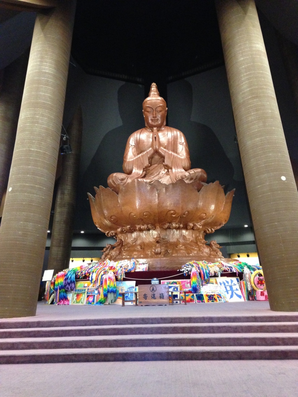 沖縄県営祈念公園内にある平和祈念堂に行ってきました。中に入ると大きな大仏があり、その周りには折り紙の鶴でできた作品がズラリと並んでいました。見るのはそれだけしかなく、入場料450円と見るものと比較すると割高感がありました。JCBのクレジットカードを提示すると50円引になります。資料館の方が戦争に関する様々なことが知れて良いです。
