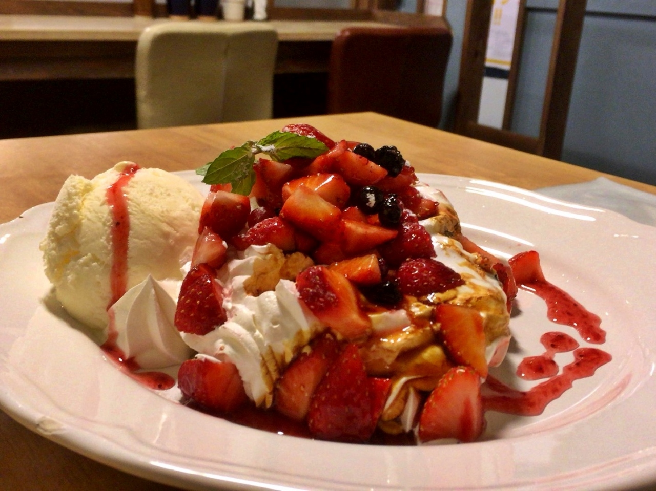 夕方には、おやつタイム専用のカフェメニューがあり、ベリーがタップリと乗ったフレンチトーストを友人とシェアしました。