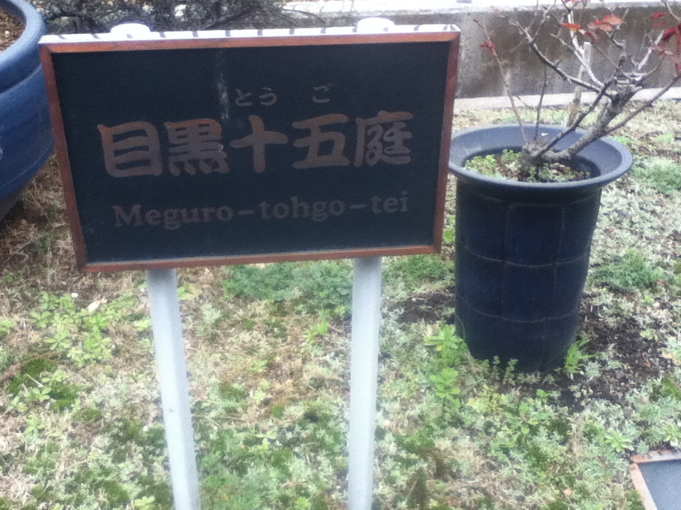 中目黒駅の南側、目黒区総合庁舎の屋上にある。庁舎の受付横を通り右奥のエレベータで行ける。屋上にはタイル床で全体的にかなり古い雰囲気であるが、植栽が沢山並んでいた。また庁舎の周りの景色も見れる。庁舎に来たついでに、気分転換に訪問するのもいいかもしれない。