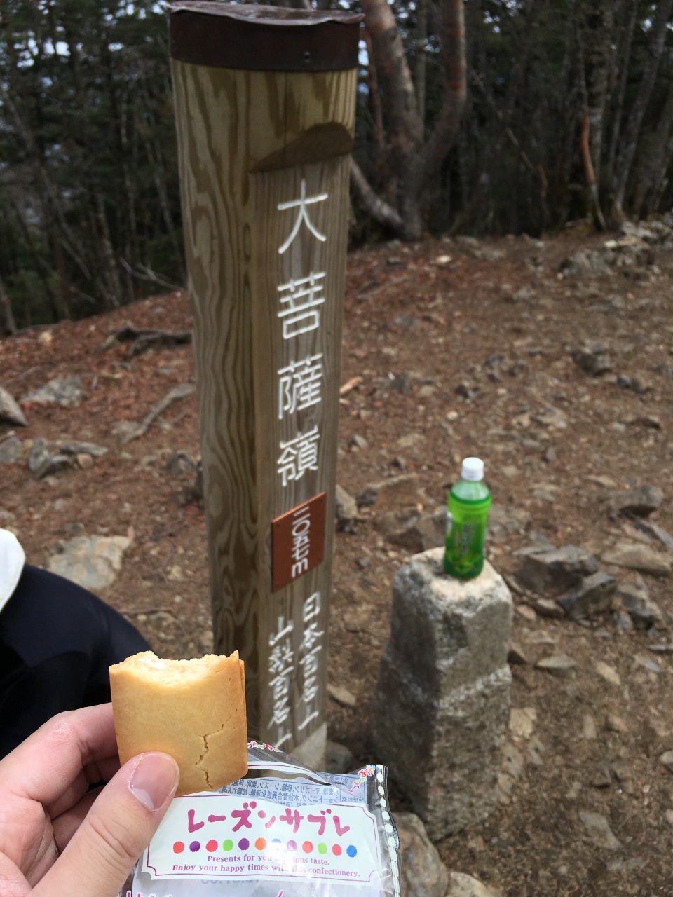 大菩薩峠をハイキングの目的としていましたが、同じ道を戻るのも楽しくないので、大菩薩嶺を経由してぐるりとまわるルートで戻ってきました。大菩薩峠は見晴らしがよく、初心者にもオススメですが、こちらは木々に囲まれているため見晴らしもよくないので、正直無理に訪れることもないかと思いました。
