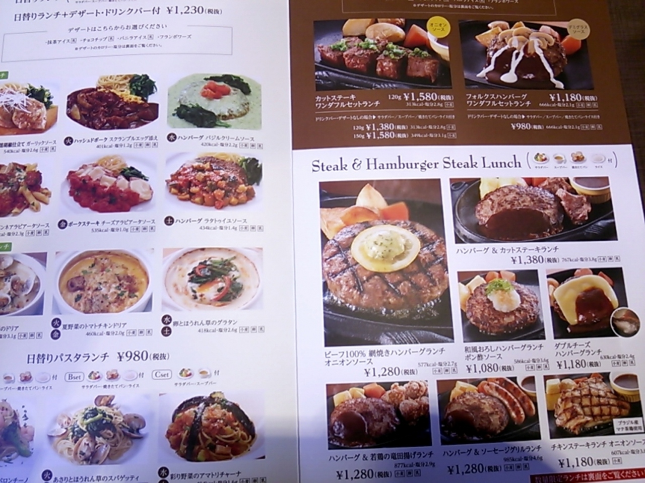 私が注文したのは、メインのハンバーグにサラダバー・スープバー・焼きたてパン(希望があればライス)・ドリンクバー・アイス(三種類から選べます。)で1180円+税って・・・!!安いですね!