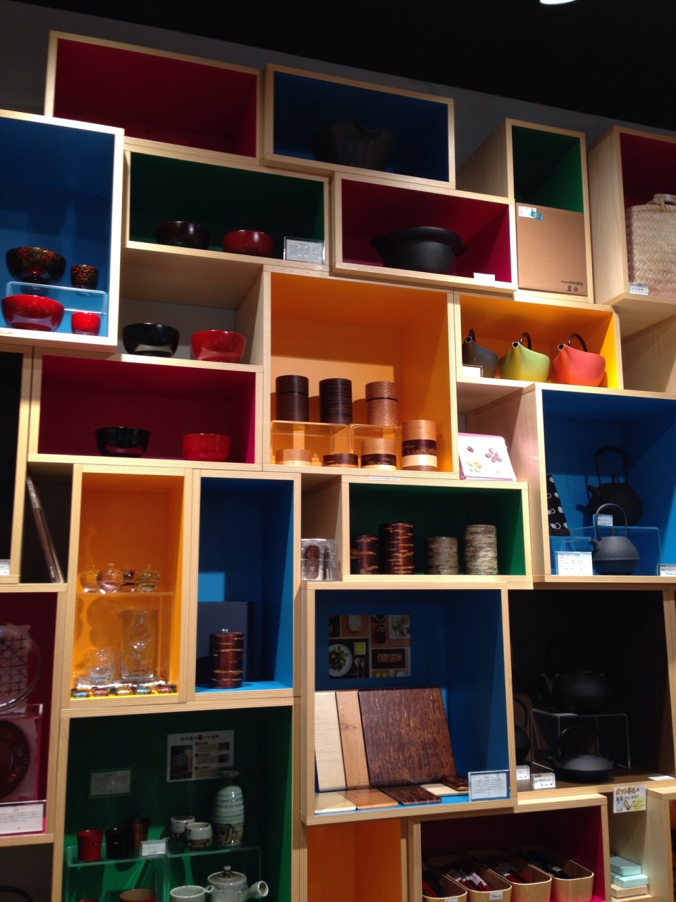 いわゆるアンテナショップがおしゃれになった感じのお店です。壁面のカラフルな什器が目をひき、商品というより展示品の様にも感じる。