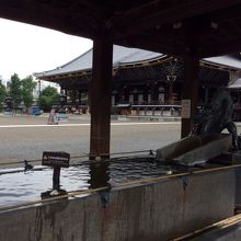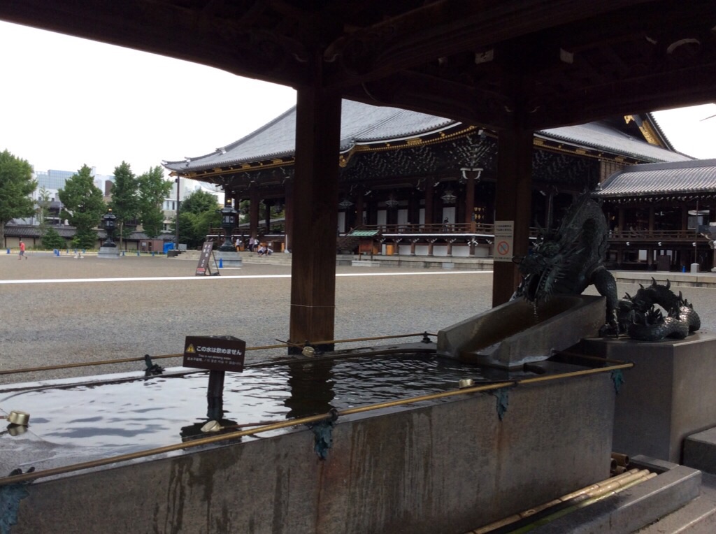 JR京都駅中央口から徒歩で10分ほど北に歩いて行くと烏丸通りに鎮座している感じで見えてきます。さすがに広大な敷地を持っているので外国人観光客を乗せた観光バスも多いです。境内は広く、参拝客と観光客が半々といった感じでしょうか。専門のガイドの方のツアーがあり、熱心な説明を思わず横耳で聞いてしまいました。