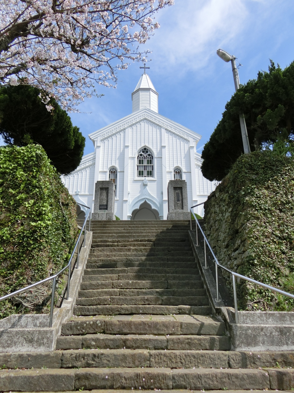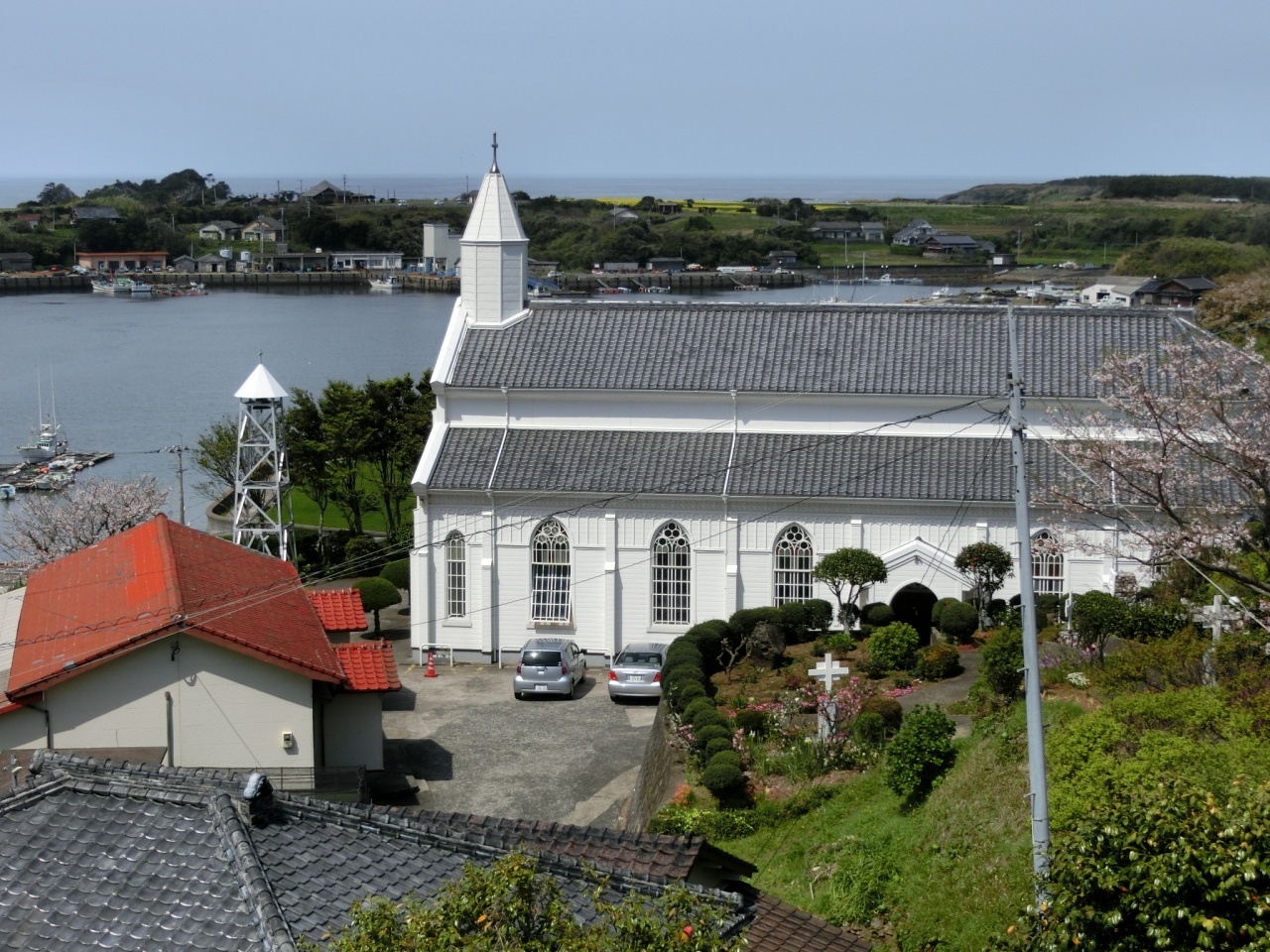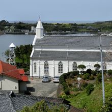 入り江を見下ろす高台に建つ白亜の教会
