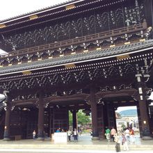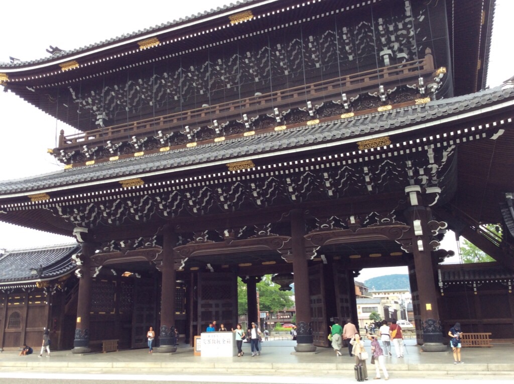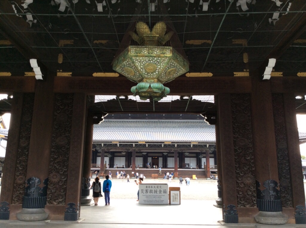 数年かかった終了して、今年になって通ることができるようになった門です。巨大な二層建ての二重門で、世界最大級の木造建築である御影堂通ずる門としてふさわしい威容を誇っています。さすがに外国人観光客を含め、多くのカメラが向けられていました。