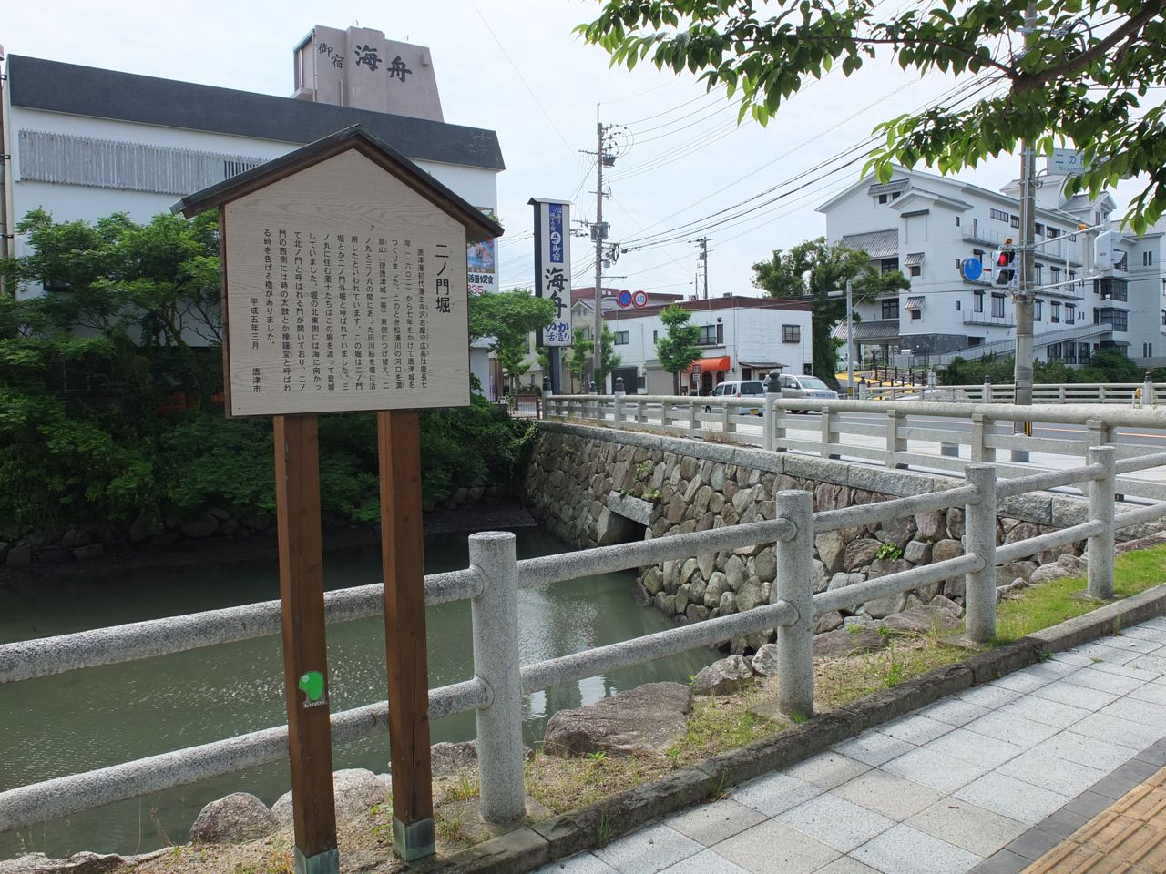 松浦川は今は唐津城の東側で海に流れ込んでいますが、その昔はこのお堀が松浦川だったのだそうです。