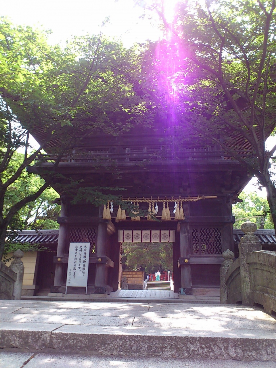 博多の郊外にある十年に一度、宮内庁より勅使が遣わされているぐらい由緒正しき香椎宮に行ってきました。太鼓橋を渡ってしばらく行くと、香椎宮の境内に入るための門のこの楼門があります。石段の上にそびえる屋根付きの門を見上げると、これから神聖な場所に行くと言う心構えができるような門です。