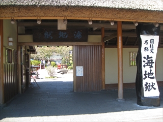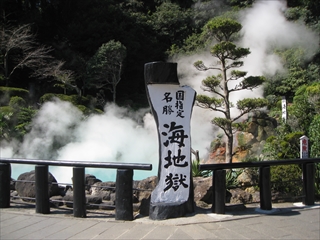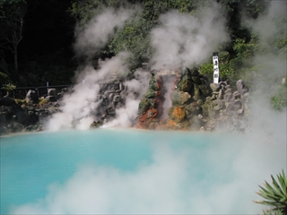 青い海のような池に、猛烈な湯気が沸き立つ地獄です。
