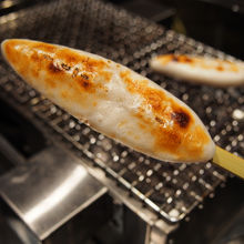 店舗奥には丸い焼台があって
