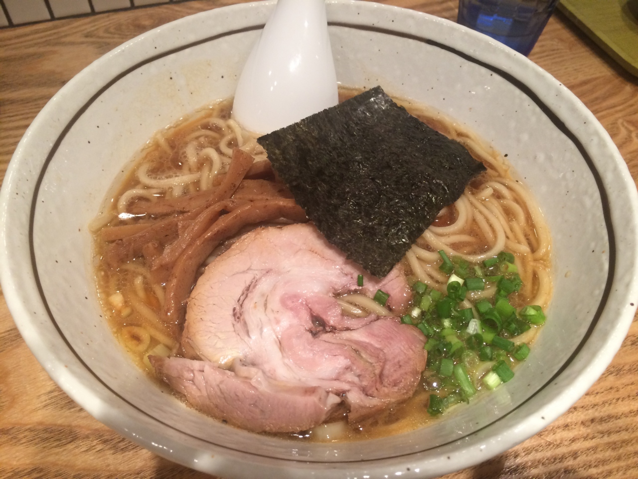カウンター8席ぐらいかな、ちょい煮干し風味、麺はガッツリ太麺、ちょっと酸味があるスープだった