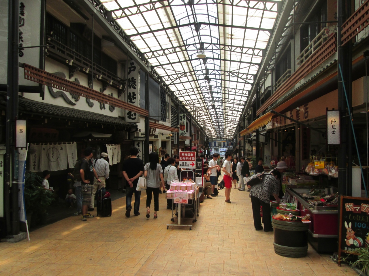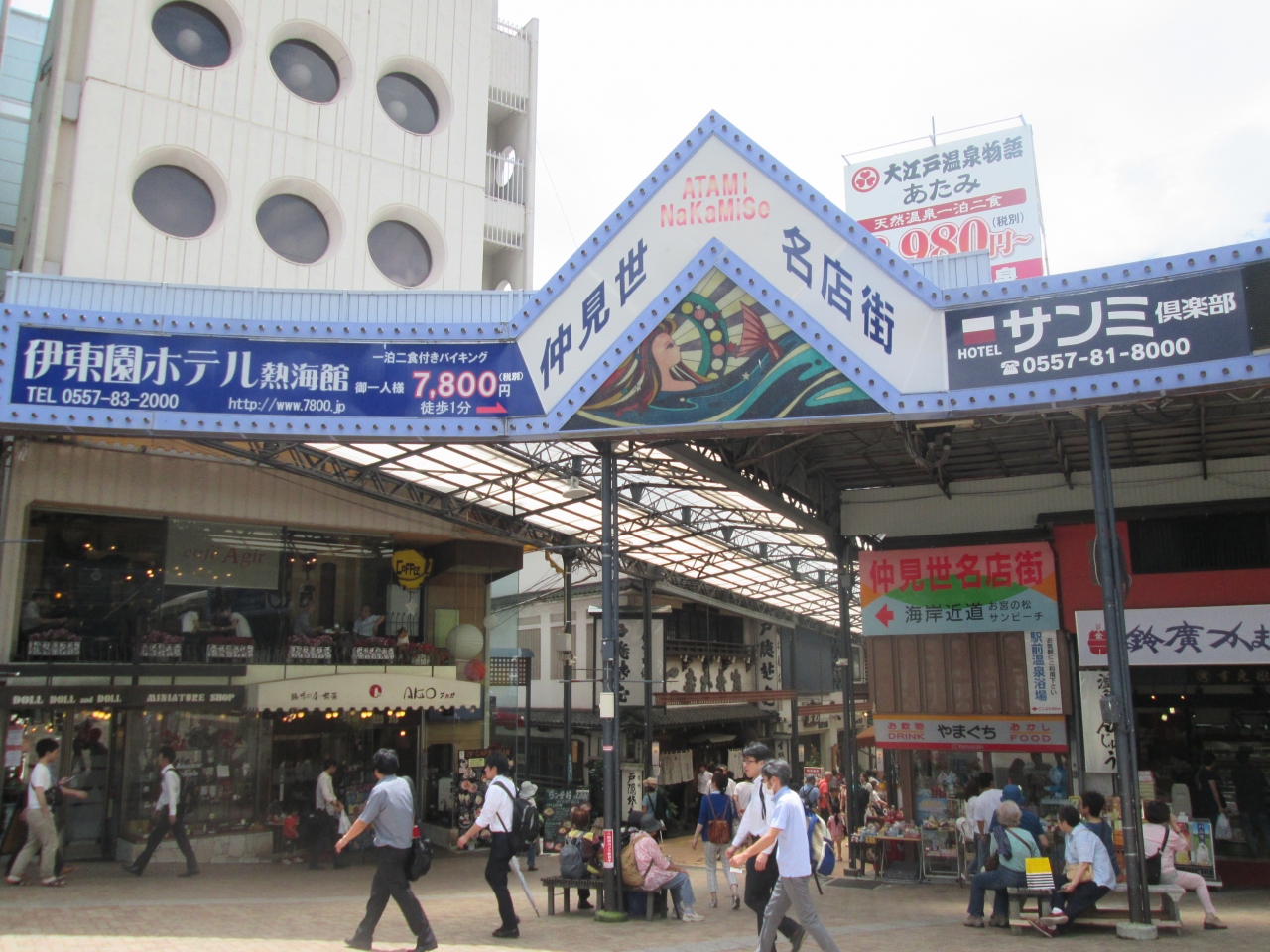 JR熱海駅前にあるアーケード通り、平和通り商店街と並行してます、温泉街や海岸に歩いて行く場合通ることが出来ます、そばや・寿司屋などの飲食店、ひものや海産物を扱うお土産屋、衣料品・雑貨店など20数店が軒を並べています、駅前なので時間調整でふらつくと良いでしょう。