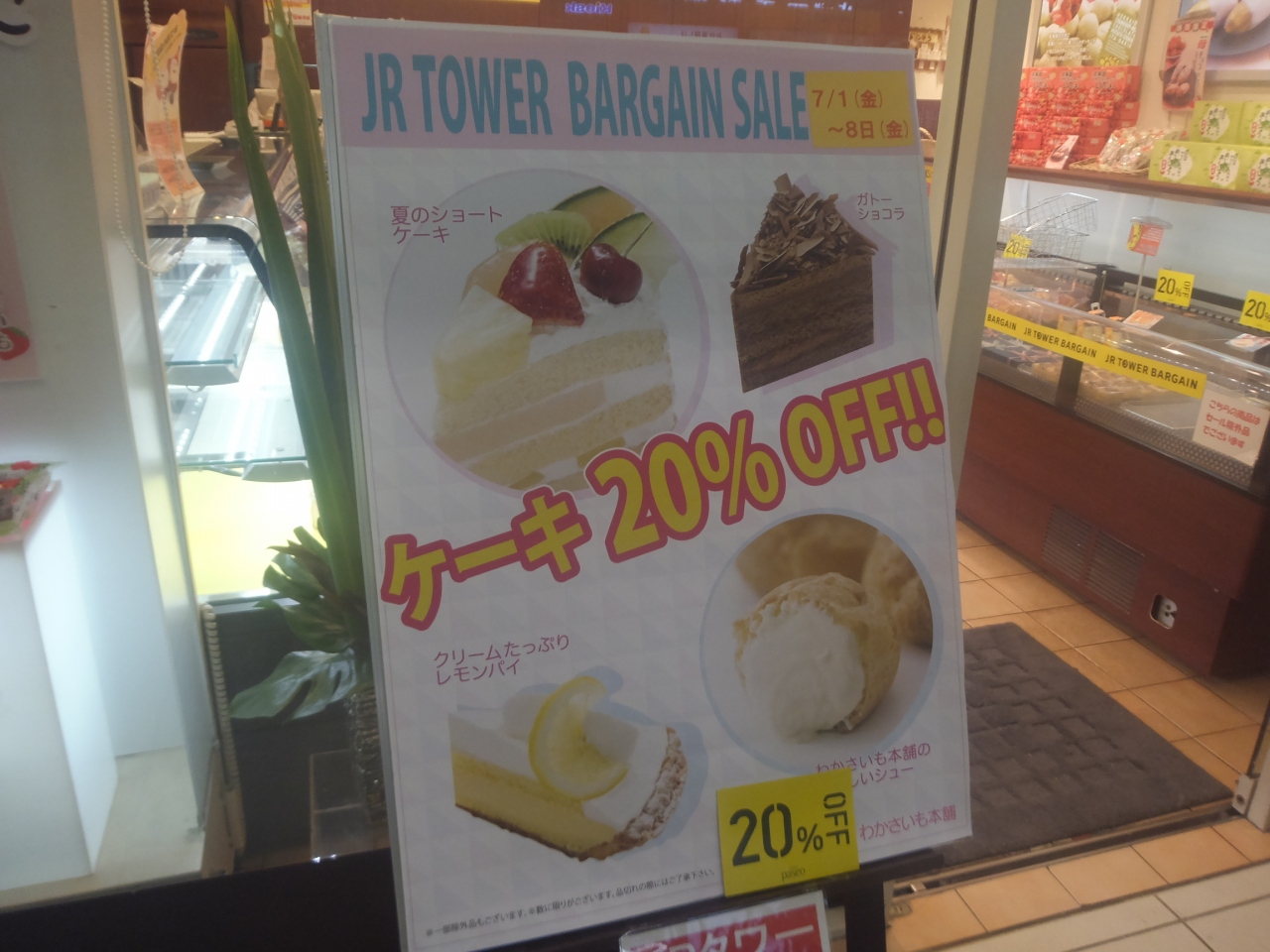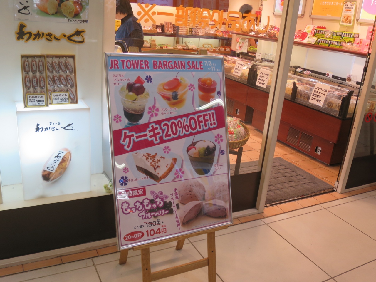 ホームページを見ると時々、セールなどをやっているようですが、店舗を見ていると札幌店では、毎年7月の上旬あたりに、いくつかのケーキを限定で20%オフセールをやっています。