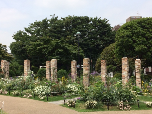 公園の中にはイギリス館といった建物があったり、花がたくさん咲いているローズガーデンがあります。