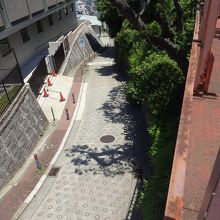 山手本通りから下っていく坂で、西側はフェりス女学院の敷地となっている。