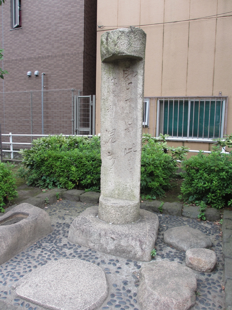 浅草二天門近くの花川戸公園入口に建っています。九代目市川団十郎自作自筆の歌が彫られている石碑です。関東大震災で壊れ埋まっていたものを1958年にこの地に移建しました。目立たない所にあるのでこの碑を見に訪れる人はいませんでした。浅草寺本堂北側の境内に大きな九代目市川團十郎像があります。この碑と一緒に見て偲んでみてはいかがでしょうか。